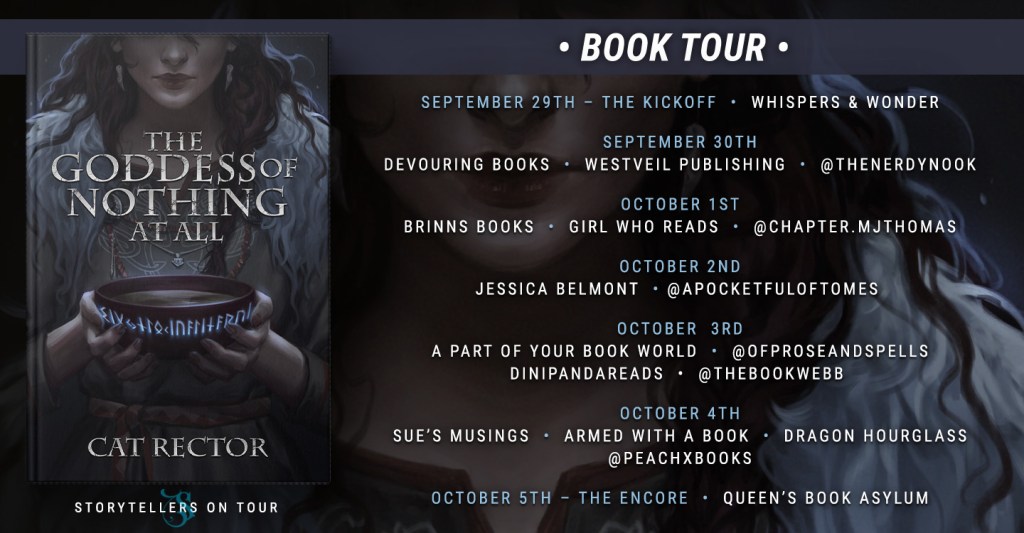 I’m back with another blog tour with The Storytellers on Tour for The Goddess of Nothing at All by Cat Rector. Thanks to the author for providing an ARC in exchange for an honest review!