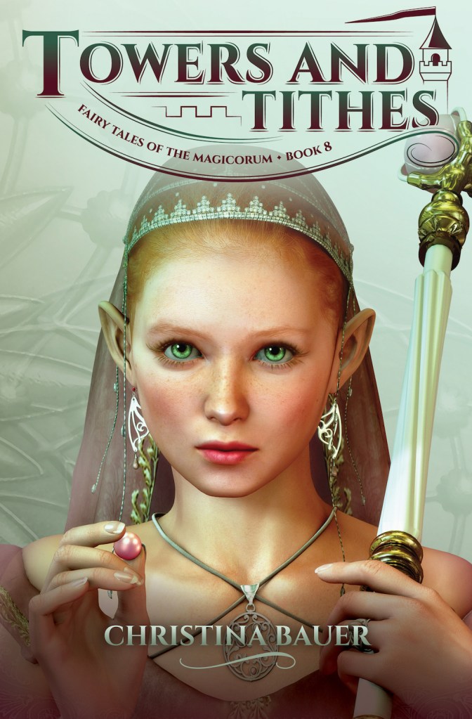 Hello, friends! Today I’m shining a book spotlight on Towers and Tithes by Christina Bauer. This is actually the eighth book in the Fairy Tales of the Magicorum series but all the books in this series can be read as a standalone!